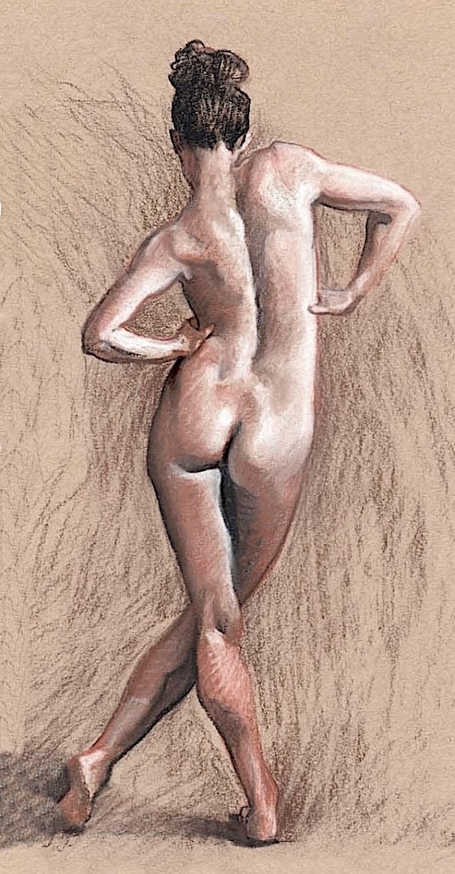 In this intimate class of eight, students will engage in two 6-hour poses: female for the first two days and male for the following two. Regardless of drawing ability, participants will advance beyond quick sketches, learning a time-tested method for creating more finished figures and portraits. While six hours may seem short compared to traditional ateliers, it provides ample opportunities for Ken and Stephanie to introduce essential vocabulary and concepts that will significantly enhance your drawing skills beyond the typical 20-minute sessions of most sketch groups. During the first two days, you will learn from Ken, and on Days 3 and 4, from Stephanie.